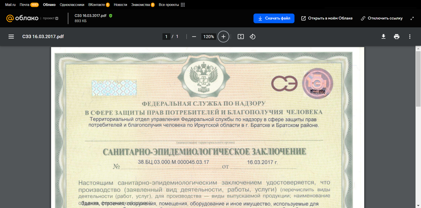 САНИТАРНО-ЭПИДЕМИОЛОГИЧЕСКОЕ ЗАКЛЮЧЕНИЕ 16.03.2017