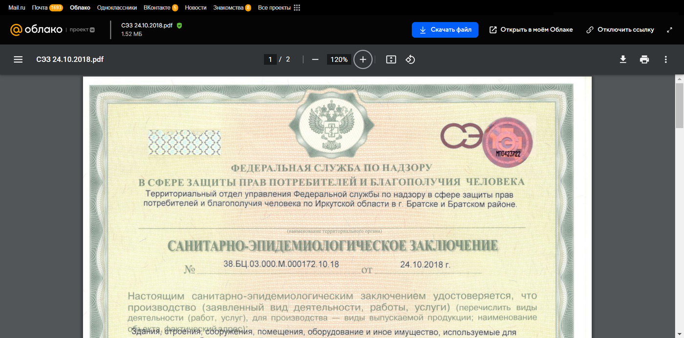 САНИТАРНО-ЭПИДЕМИОЛОГИЧЕСКОЕ ЗАКЛЮЧЕНИЕ 24.10.2018