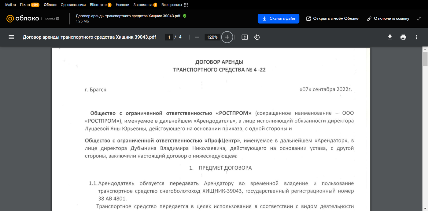 ДОГОВОР АРЕНДЫ ТРАНСПОРТНОГО СРЕДСТВА ХИЩНИК-39043