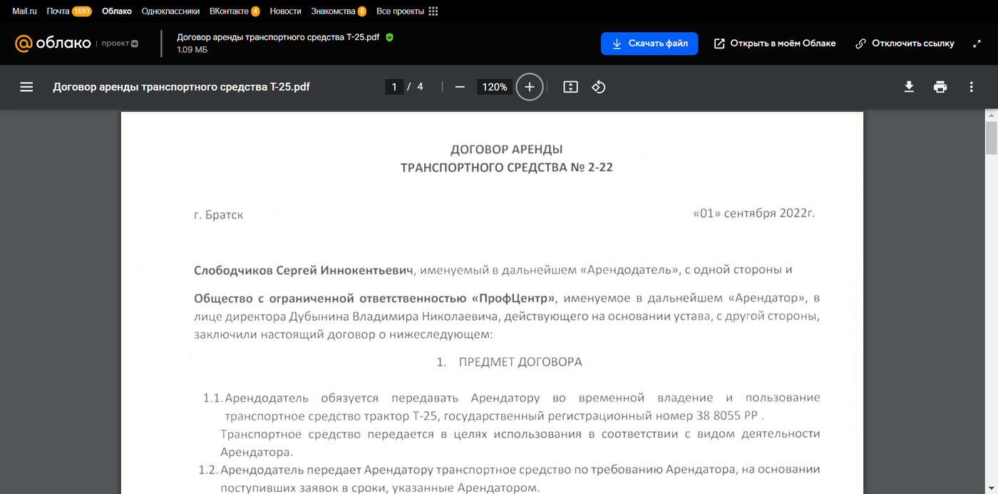 ДОГОВОР АРЕНДЫ ТРАНСПОРТНОГО СРЕДСТВА Т-25