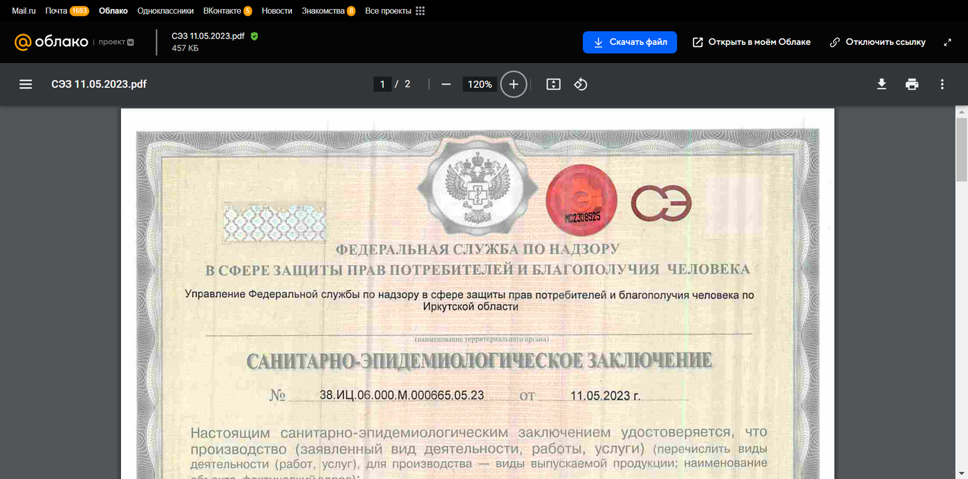 САНИТАРНО-ЭПИДЕМИОЛОГИЧЕСКОЕ ЗАКЛЮЧЕНИЕ 11.05.2023