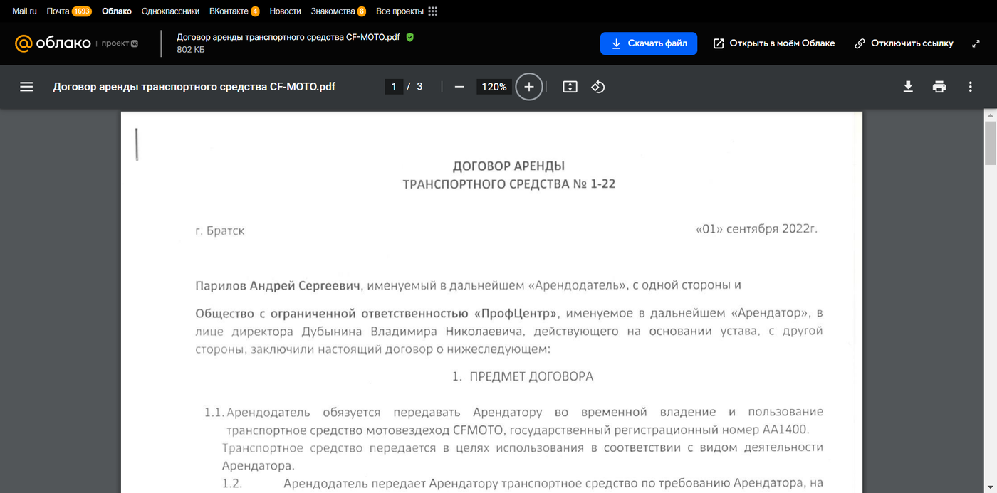 ДОГОВОР АРЕНДЫ ТРАНСПОРТНОГО СРЕДСТВА CF-MOTO
