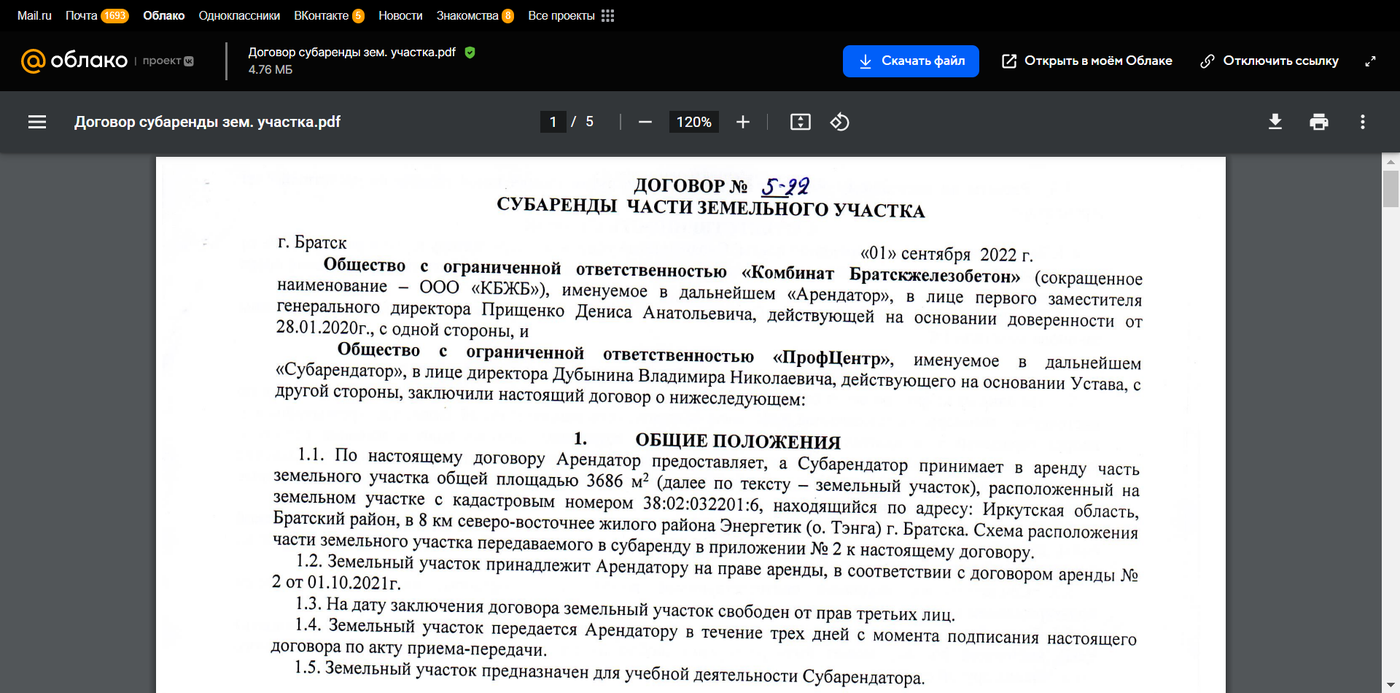 ДОГОВОР СУБАРЕНДЫ ЗЕМЕЛЬНОГО УЧАСТКА