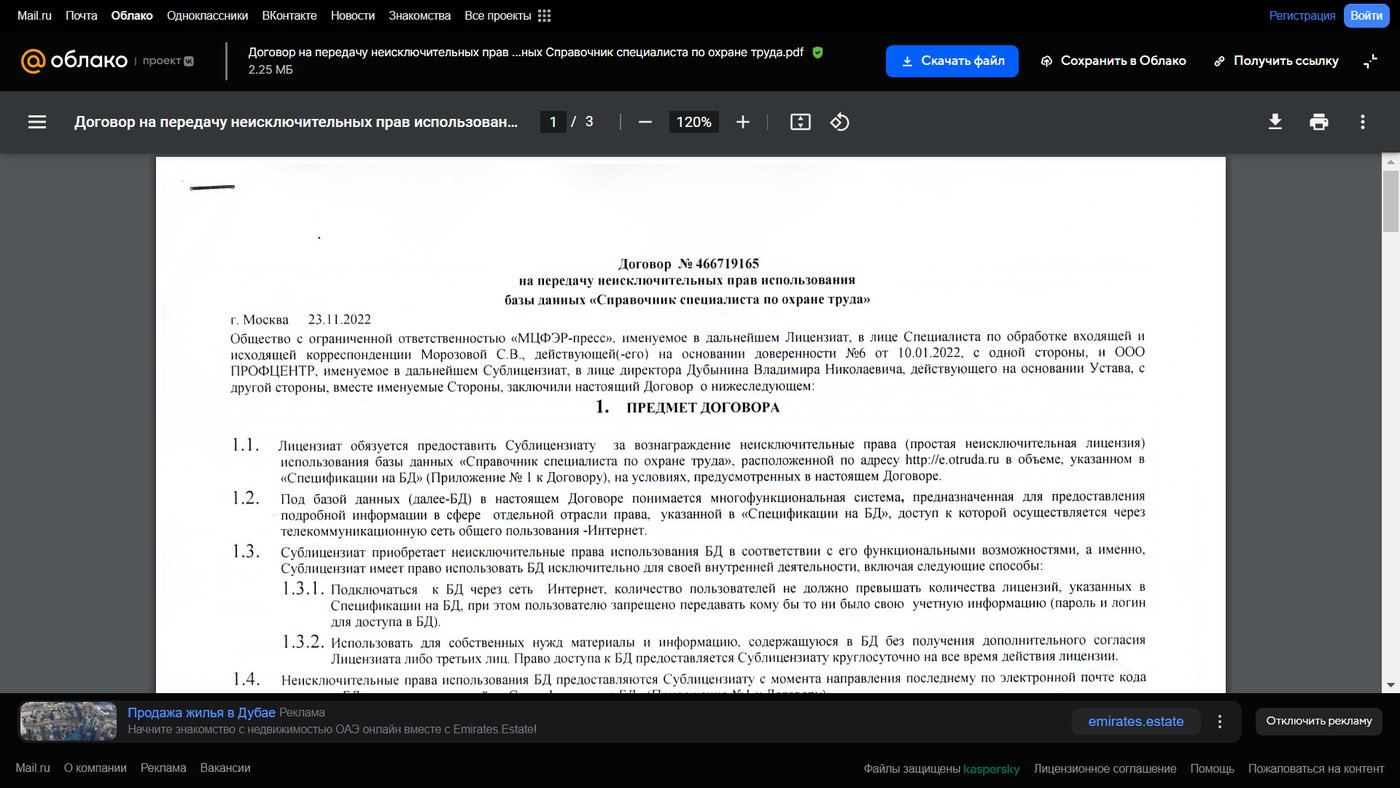 ДОГОВОР НА ПЕРЕДАЧУ НЕИСКЛЮЧИТЕЛЬНЫХ ПРАВ ИСПОЛЬЗОВАНИЯ БАЗЫ ДАННЫХ «СПРАВОЧНИК СПЕЦИАЛИСТА ПО ОХРАНЕ ТРУДА»