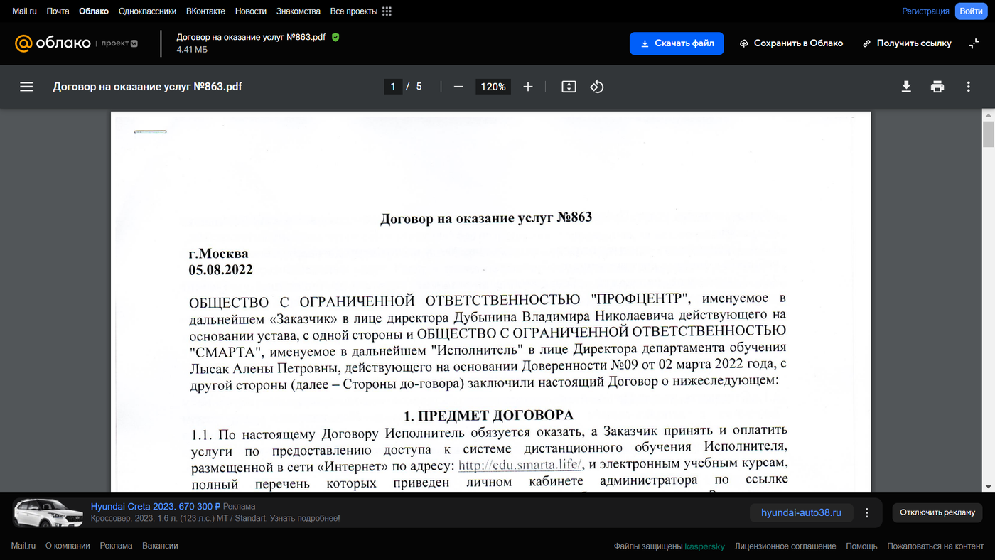 ДОГОВОР НА ОКАЗАНИЕ УСЛУГ №863