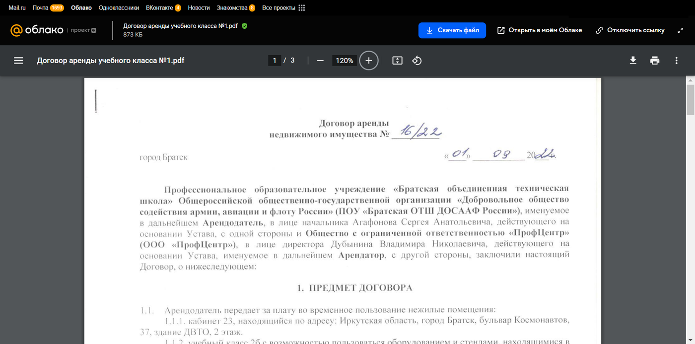 ДОГОВОР АРЕНДЫ УЧЕБНОГО КЛАССА