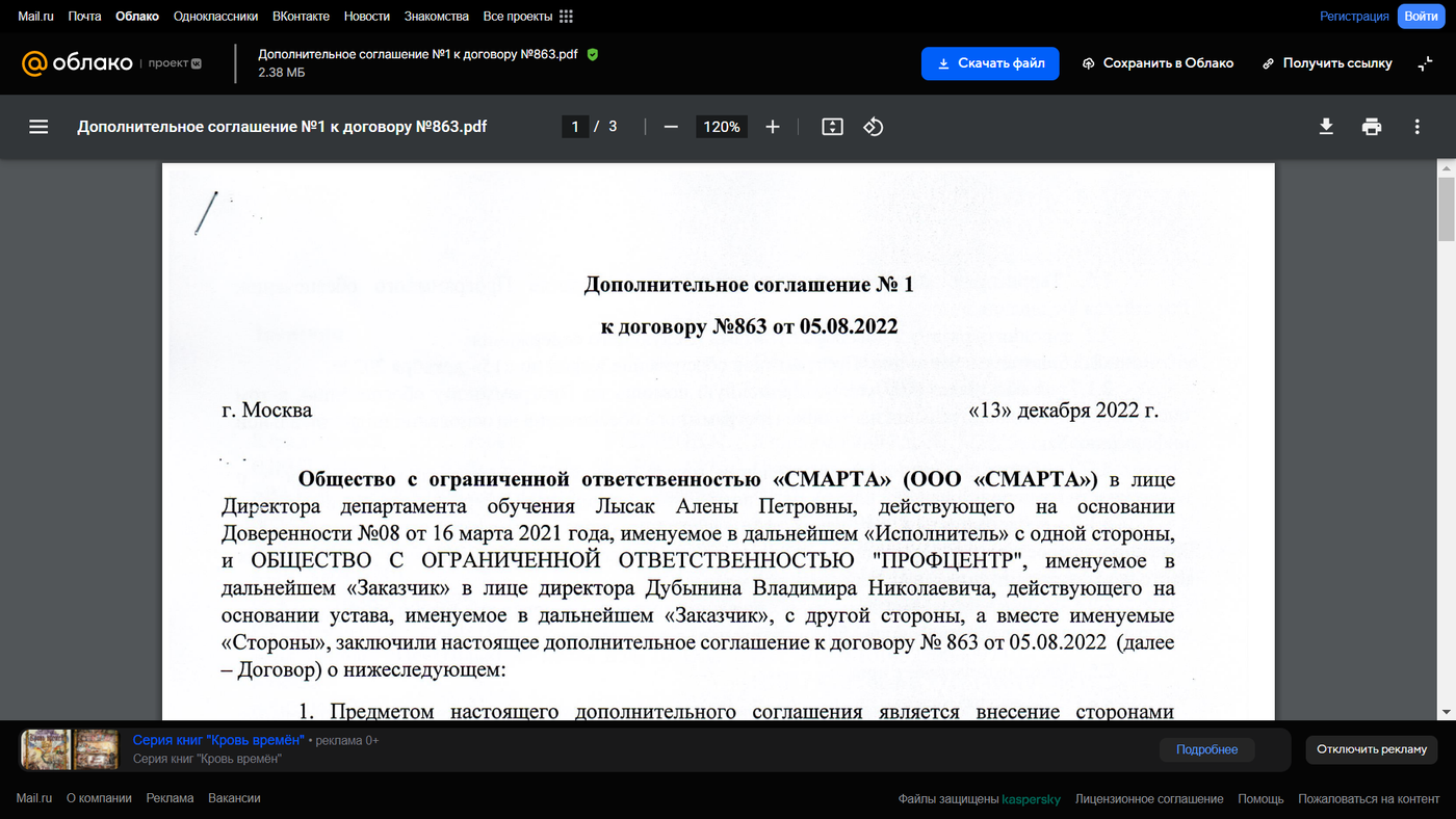 ДОПОЛНИТЕЛЬНОЕ СОГЛАШЕНИЕ №1 К ДОГОВОРУ №863